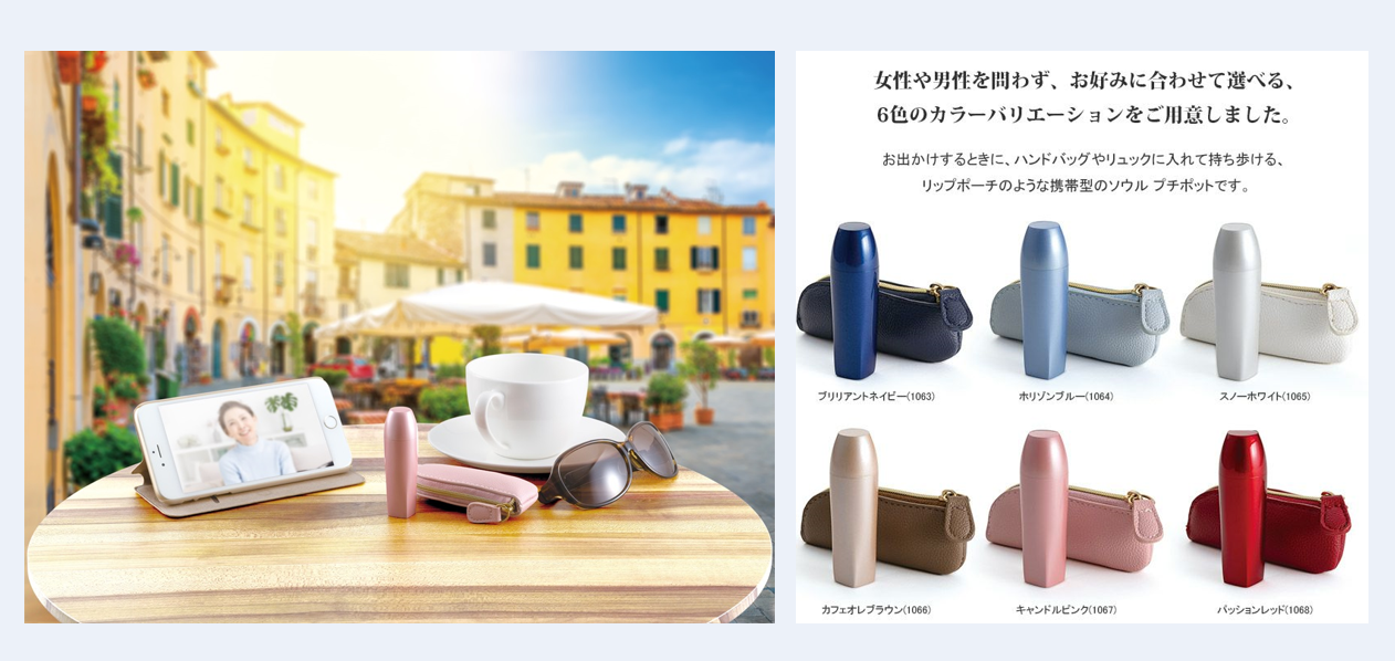 お出かけするときに、ハンドバックやリュックに入れて持ち歩ける、リップポーチのような携帯型のソウルプチポットです。