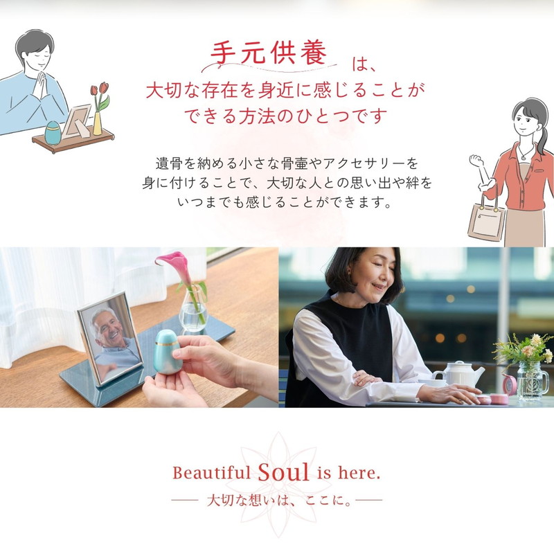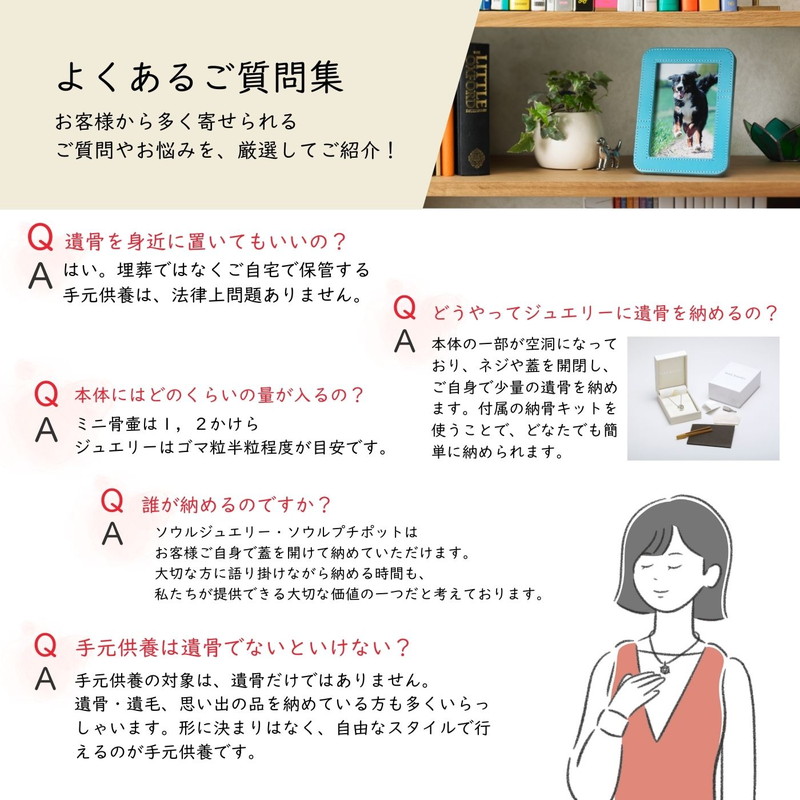 Soul Jewelryでは、その想いをいつまでも大切にできるよう、ペット専用の手元供養アイテムをご用意しています。