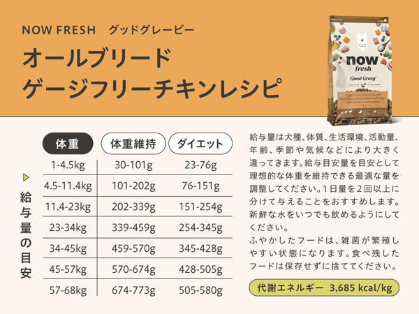 CFIA(カナダ食品検査庁)基準で人間用として合格した食材を厳選し、さらに一歩進んで、その食材の鮮度まで追求したこだわりこそが、NOW FRESH最大の特徴であり美味しさの秘密です。