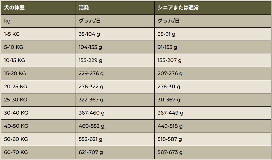 給餌量を目安に、愛犬の体調や体型を見ながら調整してください。