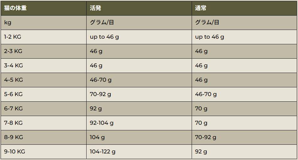 給餌量を目安に、愛猫の体調や体型を見ながら調整してください。
