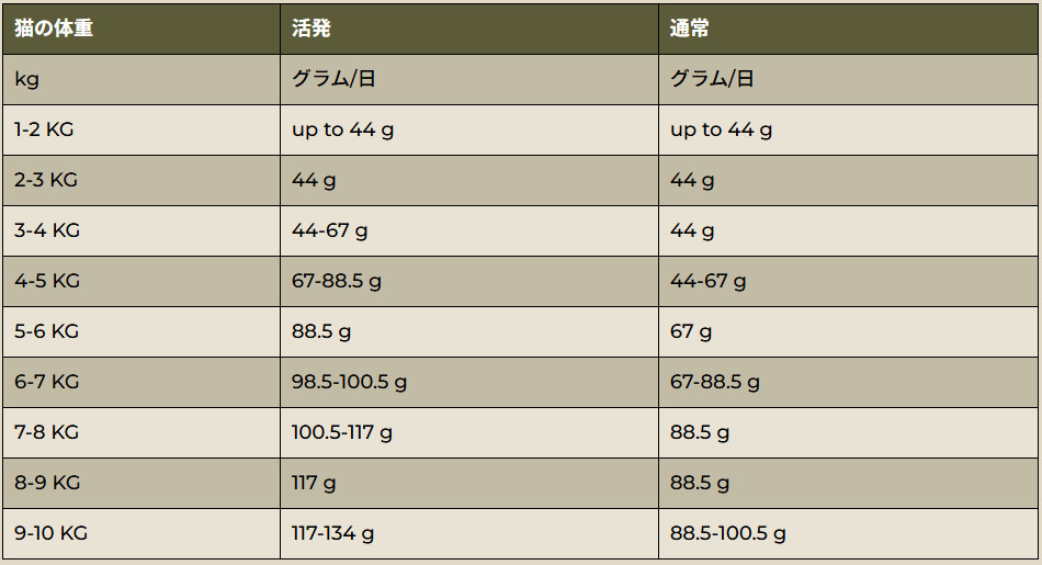 給餌量を目安に、愛猫の体調や体型を見ながら調整してください。