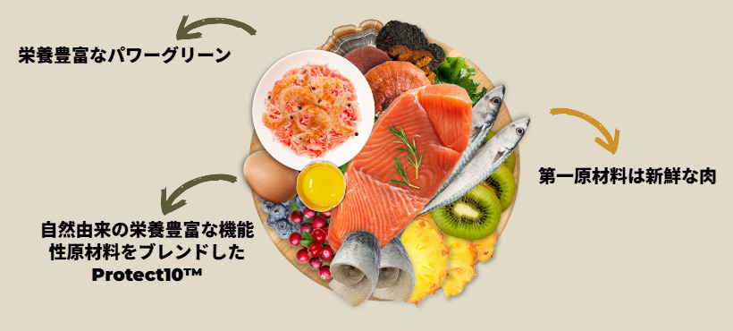 ・たんぱく質のうち90%は動物由来で、肉食動物にピッタリです。