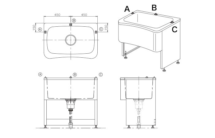 ① 角のないやさしい設計 角を丸くすることで、従来の角ばったドッグバスのイメージからやさしい印象へ。 大切なペットや、トリマーさんにも安心です。 ② 作業しやすい弓なり形状 職人が1台1台、手作業で弓なり形状にしています。 バスタブとエプロンの形状が緩やかなカーブ(弓なり形)になっており、近づいて作業できるため前かがみになりにくく、腰に負担がかかりにくい形状です。
