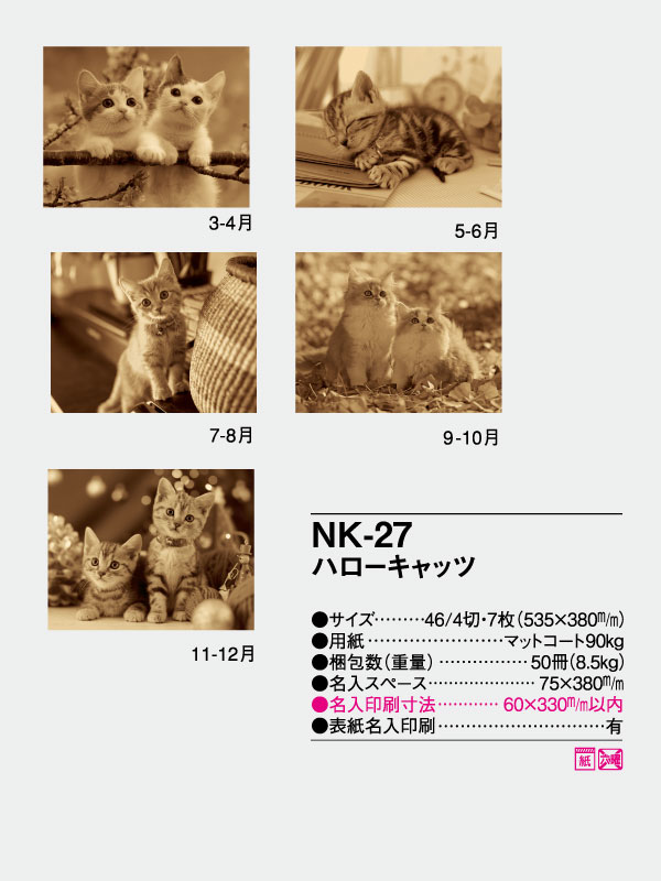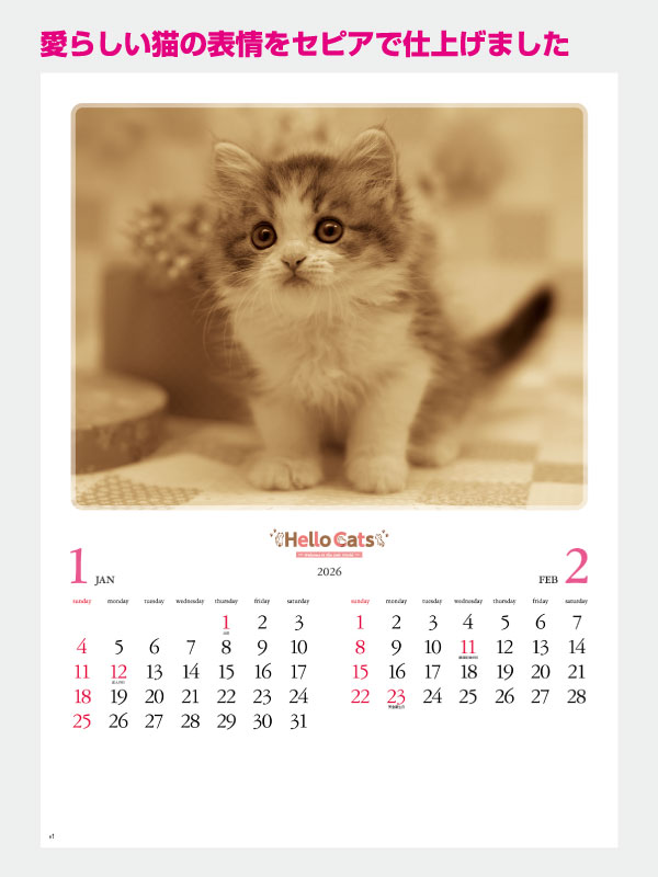 【1】 【2026年名入れカレンダー】NK27 ハローキャッツ