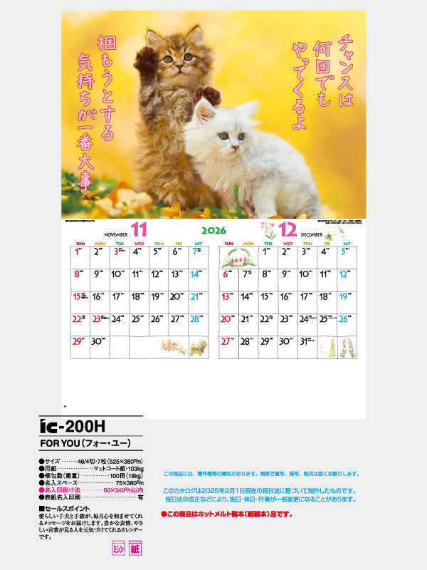 【1】 【2026年名入れカレンダー】IC200H FOR YOU