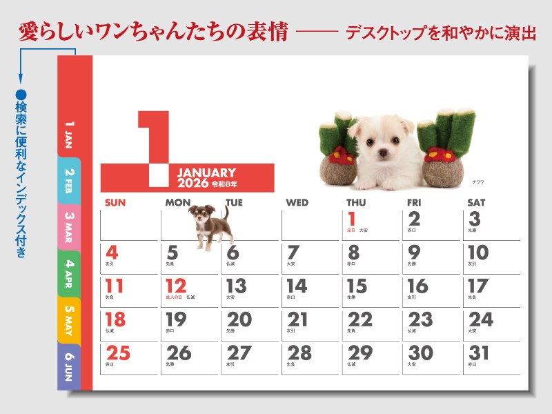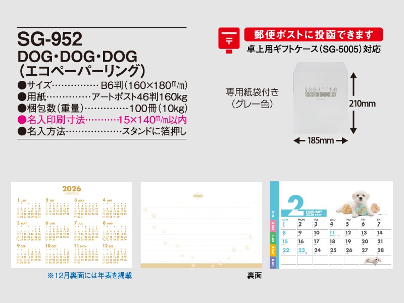 【1】 【2026年名入れカレンダー】SG952 Dog Dog Dog 卓上