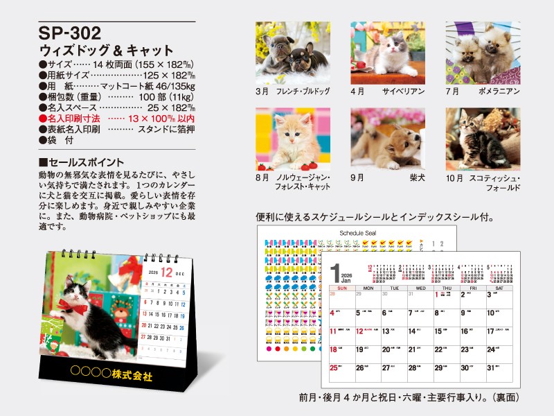 【1】 【2026年名入れカレンダー】SP302 ウィズドッグ&キャット 卓上