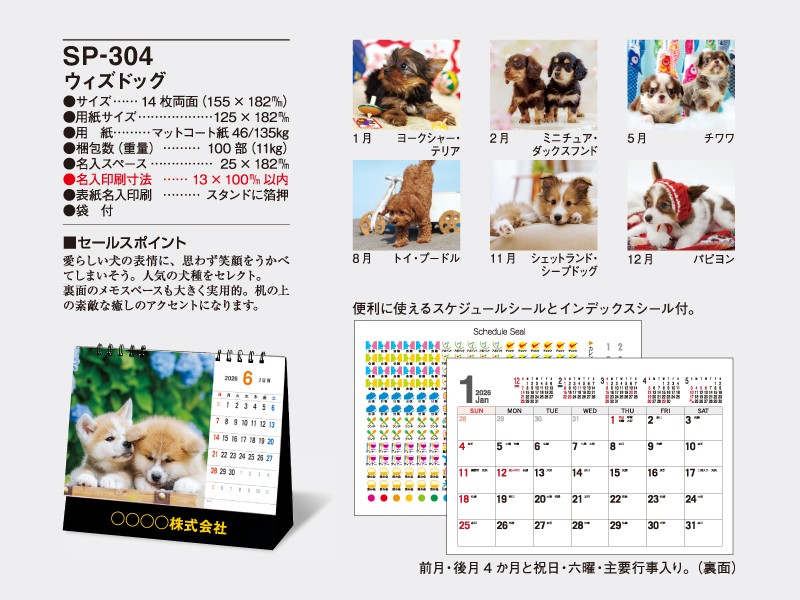 【1】 【2026年名入れカレンダー】SP304 ウィズドッグ 卓上