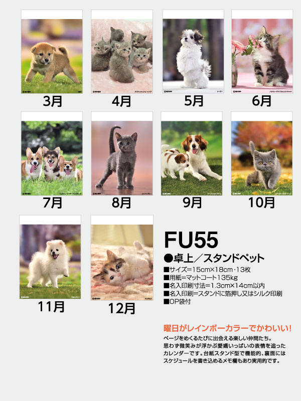【1】 【2026年名入れカレンダー】FU55 スタンドペット 卓上