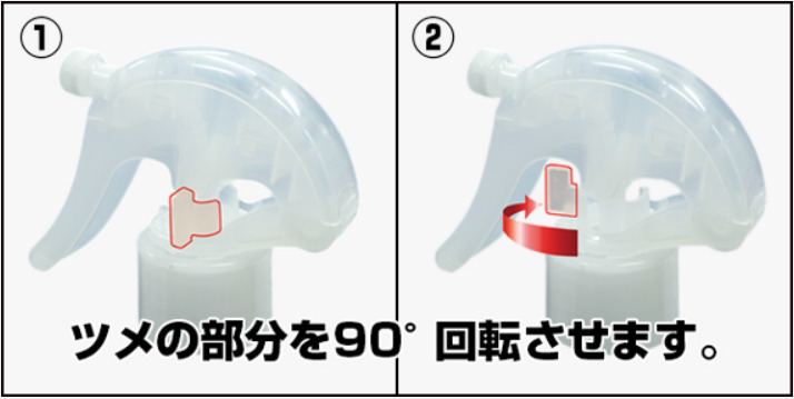 トリガー根本部分にあるツメを90°回転させ、ストッパーを解除してください。
