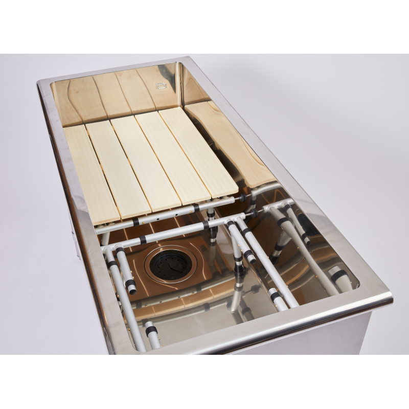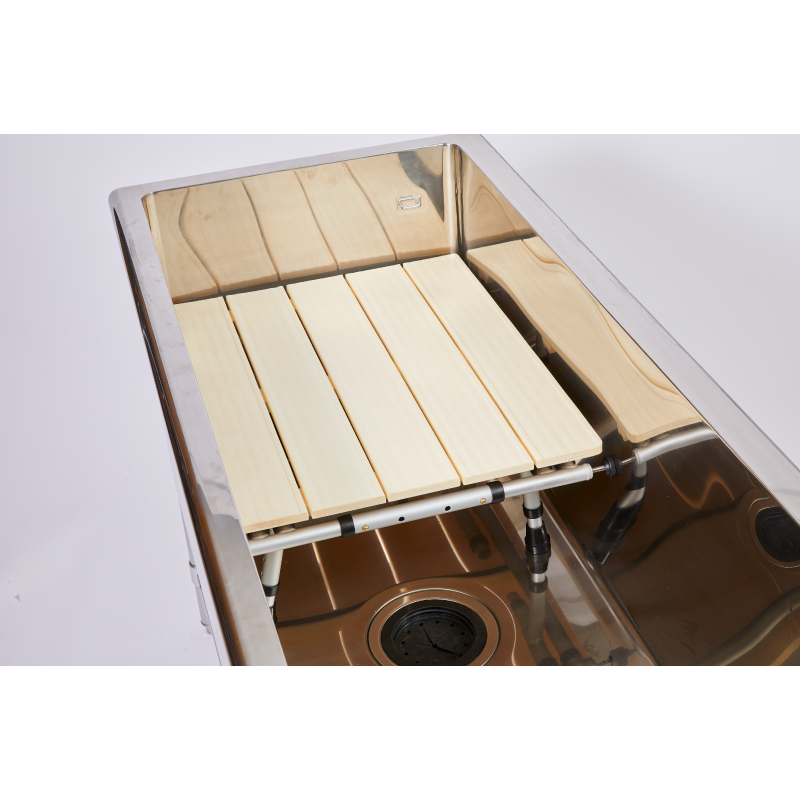 より安全に、よりストレスを感じさせないシャンプ一環境として、ペットの体高に合わせてスノコの高さを調整し湯気による呼吸負担と体温上昇の軽減を取り入れたシャンプ一方法が増えています。※回転式駆け上がり防止金具付きのドッグバスの場合は別途専用スノコをこ購入ください。