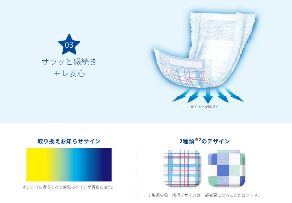 まえとうしろを間違えて装着するとモレの原因となる場合があります。