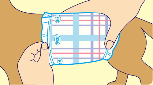 最後にギャザーを外側に出して、製品がしっかり性器を覆っていることを確認してください。