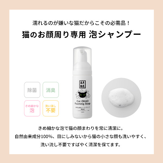 きめ細かな泡で猫の顔まわりを常に清潔に。