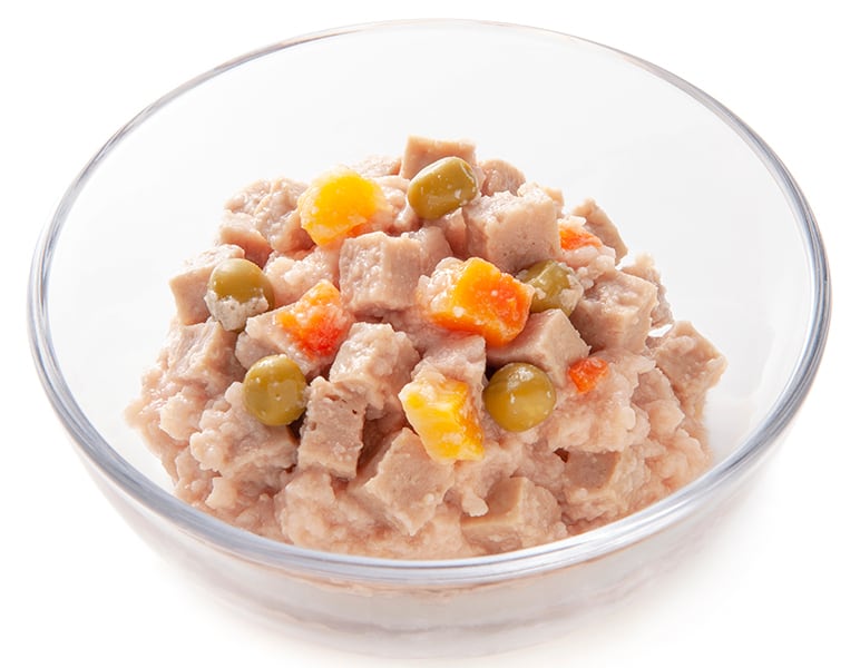 ごろごろの角切りお肉が入った、肉好きにはたまらない食べ応え◎のウェットフードです。