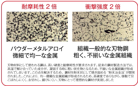 耐摩耗性に優れ、柔らかな切れ味を持続させることができます。