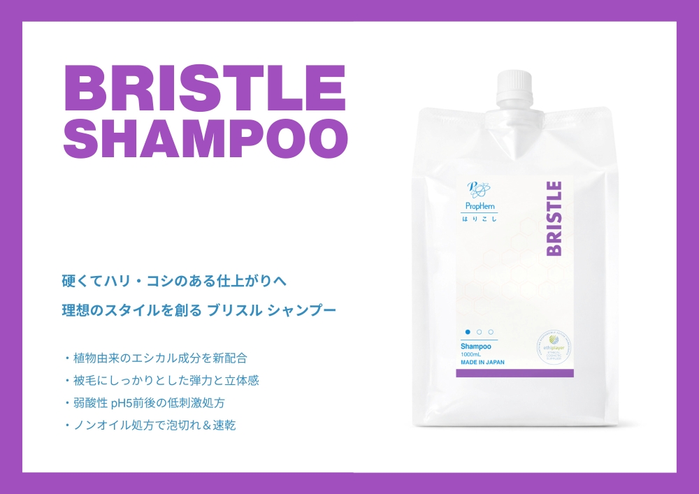 ●被毛にしっかりとしたハリとコシのあるスタイルをつくるスタイリングシャンプー