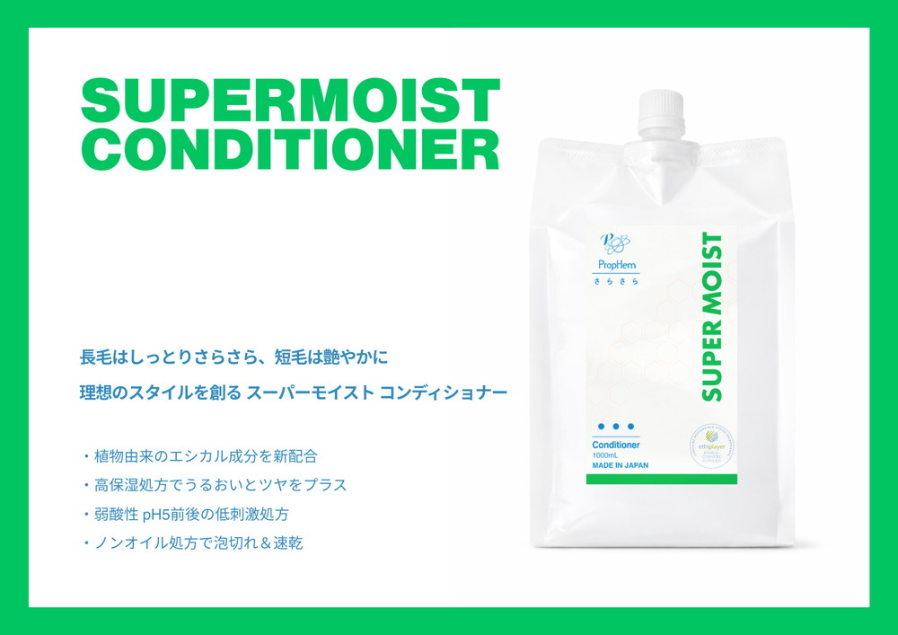 ●保湿成分をたっぷり配合し、皮膚と被毛に潤いとツヤを与え、しなやかで美しい被毛をつくるスタイリングコンディショナー