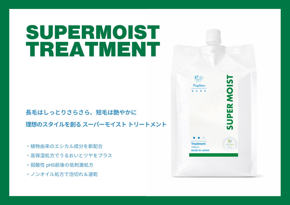 ・トリートメントは皮膚と被毛への栄養成分で保護効果はありませんので、最後にリンスをご使用ください。