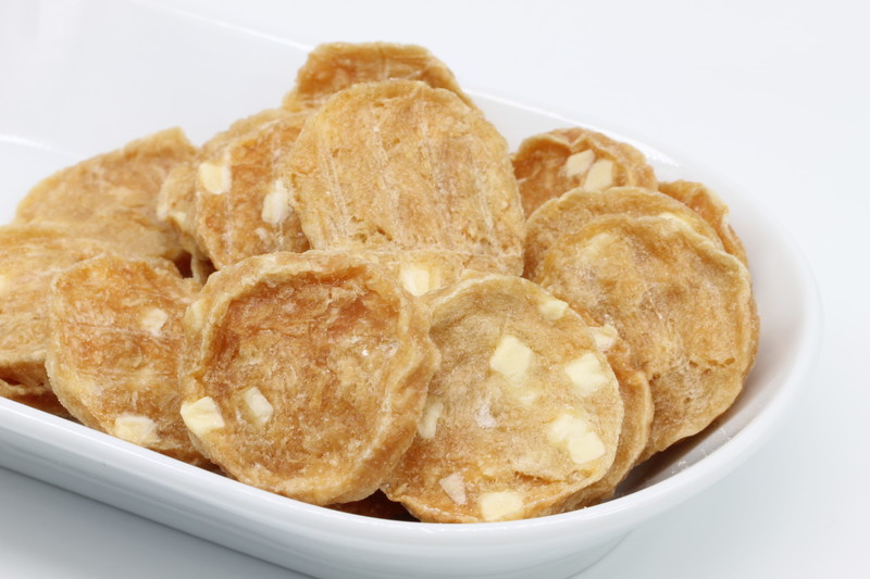 カルシウムやビタミン類が豊富なチーズを練りこんだ与えやすいチップスタイプ!