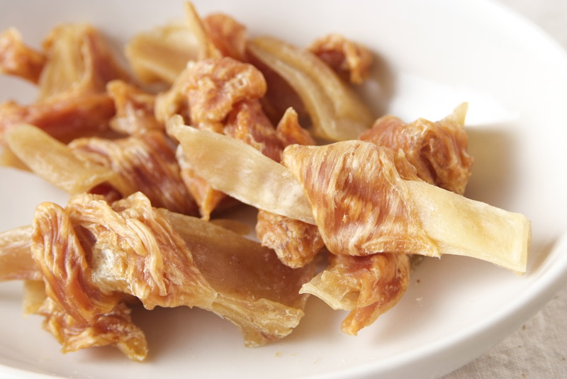 コラーゲンをたっぷり含んだ豚耳に低脂肪のささみを巻きました。