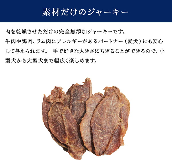 【給与量】 幼犬・超小型犬(5kg以下):5~10g以内 小型犬(5~10kg):10~15g以内 中型犬(10~20kg):15~20g以内 大型(20kg以上):20g以内 【与え方】 ・1日あたりの給与量は犬種や体重、運動量等によって異なります。 ・生後6ヶ月未満の幼犬は胃腸が未発達で、消化できないことがありますので与えないでください。 ・飲み込む恐れがありますので、飼い主様の目の届く範囲でお与えください。 ・のどにつまらせないよう、注意してお与えください。 【保存方法】 ※直射日光、高温多湿の場所を避けて保存ください。 ※開封後は必ず冷蔵庫で保管し、賞味期限に関わらずなるべくお早めにお与えください。 【使用上の注意】 ・本品は犬用おやつです。主食として与えないでください。 ・本品はペット用です。ペット以外に与えないでください。 ・幼児やお子様の手に触れない所に保管してください。 ・子供が与える時は必ず大人が監視してください。 ・開封後はなるべく早くお与えください。 ・脱酸素剤は食べられません。 ・体質に合わない場合は、直ちに与えるのを中止し、獣医にご相談ください。