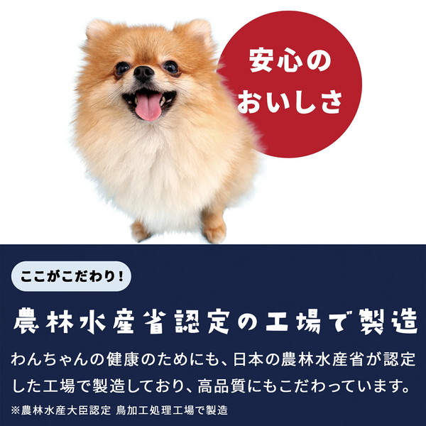 【給与量】 小型犬(10kg以下):1~2個 中型犬(10~20kg):2~4個 【与え方】 ・1日あたりの給与量は犬種や体重、運動量等によって異なります。 ・生後6ヶ月未満の幼犬は胃腸が未発達で、消化できないことがありますので与えないでください。 ・飲み込む恐れがありますので、飼い主様の目の届く範囲でお与えください。 ・のどにつまらせないよう、注意してお与えください。 【保存方法】 ※直射日光、高温多湿の場所を避けて保存ください。 ※開封後は必ず冷蔵庫で保管し、賞味期限に関わらずなるべくお早めにお与えください。 【使用上の注意】 ・本品は犬用おやつです。主食として与えないでください。 ・本品はペット用です。ペット以外に与えないでください。 ・幼児やお子様の手に触れない所に保管してください。 ・子供が与える時は必ず大人が監視してください。 ・開封後はなるべく早くお与えください。 ・脱酸素剤は食べられません。 ・体質に合わない場合は、直ちに与えるのを中止し、獣医にご相談ください。