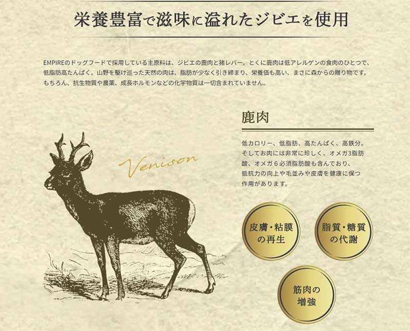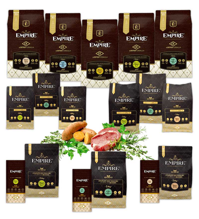 動物栄養学における最新の研究と最高品質の天然成分、それらを支える最適な技術の組み合わせが「EMPIRE」の礎になっています。食事で免疫システムを強化しながら、体が毒素を浄化するのをお手伝いする。それこそ食事が担う重要な責任であり、EMPIREが目指す本来の食事の姿です。