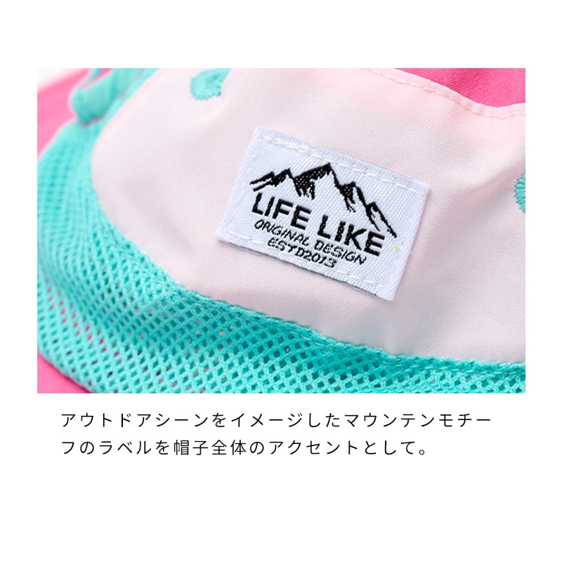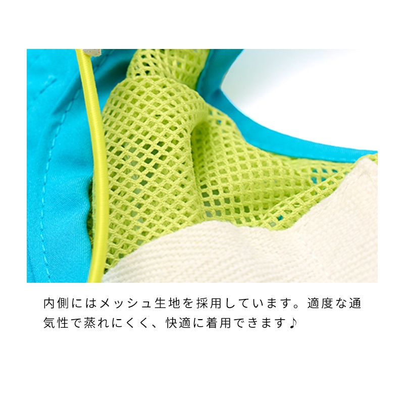 毎年大人気のカラーハットに、今年はビタミンカラーが仲間入り♪ ポップで鮮やかなカラーは、夏の暑さも吹き飛ばすほどの可愛さ! 保冷剤付きのバンダナやベストと組み合わせた、トータルコーデもおすすめです。 アウトドアシーンをイメージしたマウンテンモチーフのラベルを帽子全体のアクセントとして。 帽子のツバはほどよく柔軟性があるので、お顔まわりに優しくフィットしてくれます。 幅広ツバで目元の保護にも◎。 丈夫で発色の良いポリエステル生地を使用しています。 お手入れも簡単なので、天候の変わりやすいアウトドアシーンにもおすすめです。 内側にはメッシュ生地を採用しています。 適度な通気性で蒸れにくく、快適に着用できます♪ 内側のベルトを使えば、頭の深さを簡単に調節することができます。
