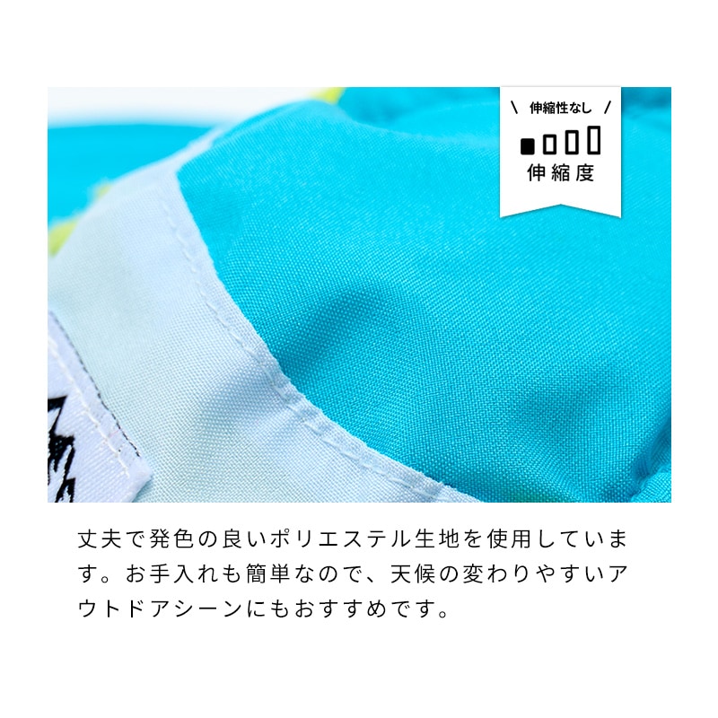 丈夫で発色の良いポリエステル生地を使用しています。