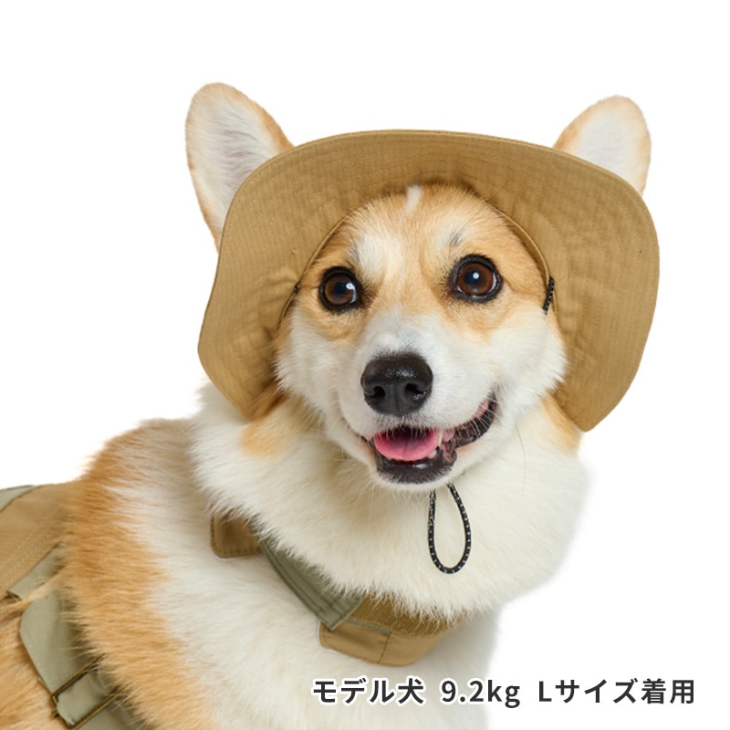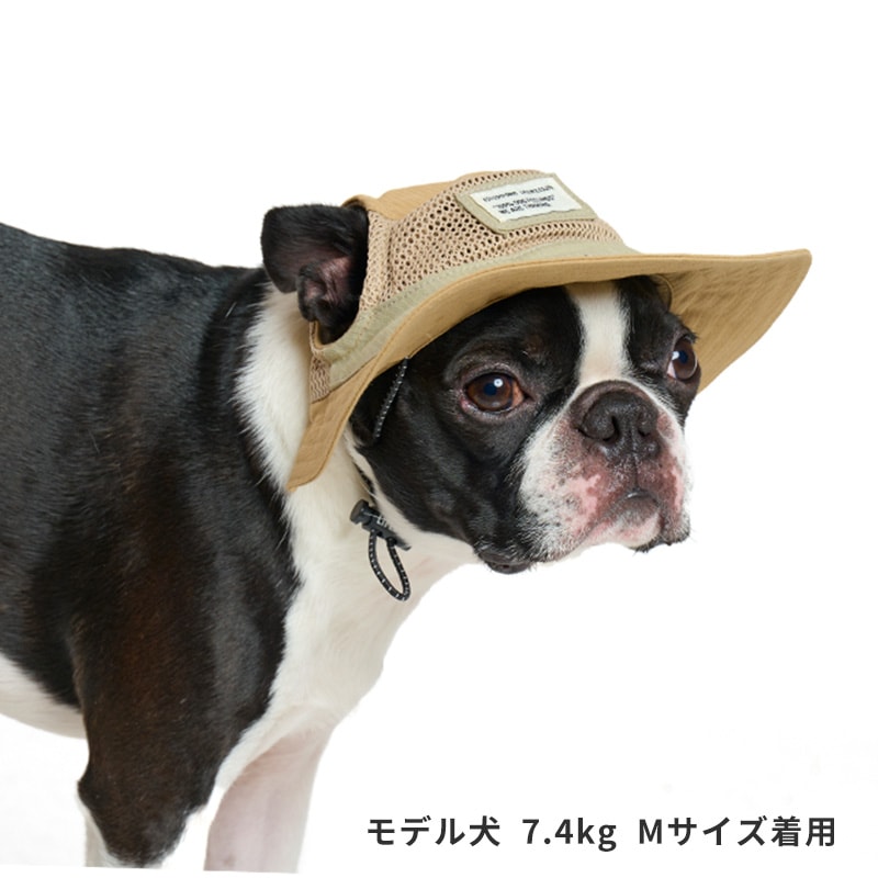 通気性の良いメッシュ生地を頭周りに使用した、2025春夏の新作ハットです。 どんなワンちゃんの毛色にもなじむカラー展開で、上品カジュアルな帽子スタイルを楽しめます♪ ハットのフロント部分にはミルスペックデザインのオリジナル織ネーム付き。 さりげないミリタリーテイストと背面のメッシュ生地が見た目にも涼しげ♪ 目にツバがかかりにくく、視界を遮らないハットタイプのデザインです。 幅広のツバは春夏の日差しから目をしっかりと保護してくれます。 内側のベルトを使えば、頭の深さを簡単に調節することができます。 メッシュ素材を多用しているので、蒸れにくく、涼しく快適な着用感です。 ヴィンテージライクな生地とのコントラストがオシャレ!