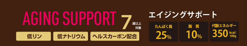 7歳からの健康に配慮し、低リン・低ナトリウム設計とし、ヘルスカーボンを配合しました。