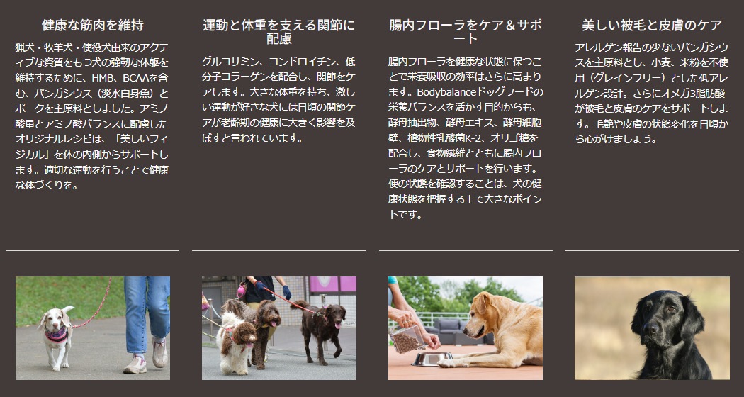 愛犬に充分な運動がさせづらい日本、特に都市部の飼育環境で暮らす、猟犬、牧羊犬、使役犬由来の犬用ドライフードです。