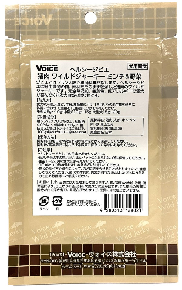 ジビエ(gibier)とはフランス語で猟師料理を指します。ヘルシージビエは野生動物の肉、天然素材をそのまま乾燥をした完全無添加、無着色、低アレルギーの国産ワイルドジャーキー(猪肉・鹿肉) です。どんな愛犬も喜んでくれる大自然の贈り物です。