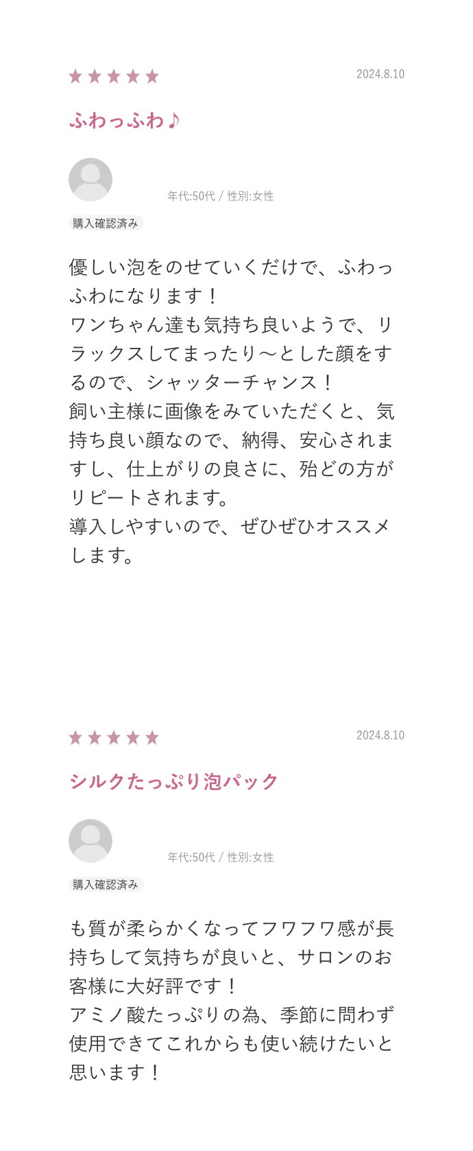 「フルーティーな香りが持続するので、飼い主さまからも好評」