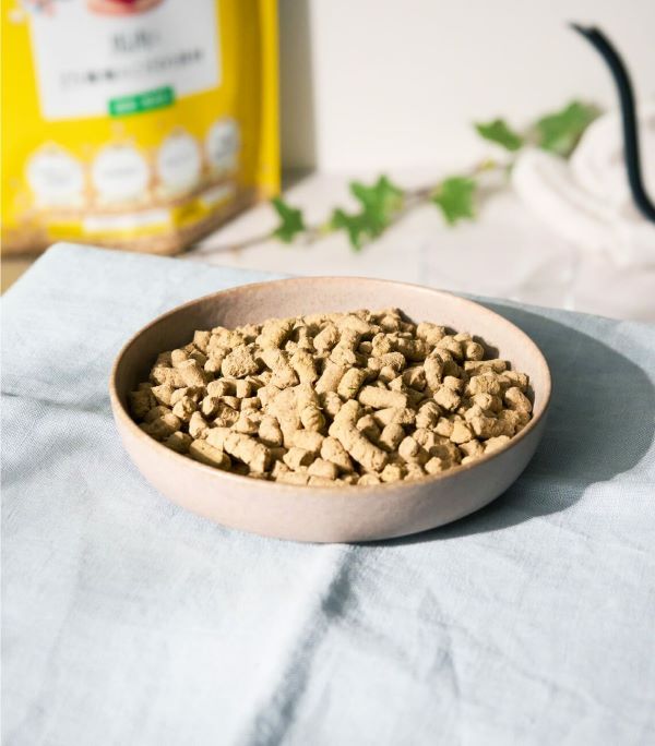 ・原材料、添加物が気になる方天然食材のみ使用。麦類(小麦粉、大麦粉、ライ麦粉)不使用のグルテンフリー。添加物は一切不使用です。・少食な子、トッピングをして与えている方バリア性の高いアルミのチャック付き袋に200gずつ個包装。最後まで鮮度を保ちます。・手作り食を与えている方手作り食で不足しがちな栄養素や、毎日摂るのが難しい食材が豊富なので、ローテーションに取り入れるのがおすすめ。・毎食手作りしたいが忙しい方ドライフードなので手間要らず、チャック付きの個包装で計量の手間も軽減。・お腹の弱い子すべての具材を消化吸収しやすく調理し、乳酸菌や食物繊維が豊富な食材を多く配合しています。・涙やけが気になる子添加物や消化の悪い原料は涙やけの原因の一つ。どちらも含まれていません。