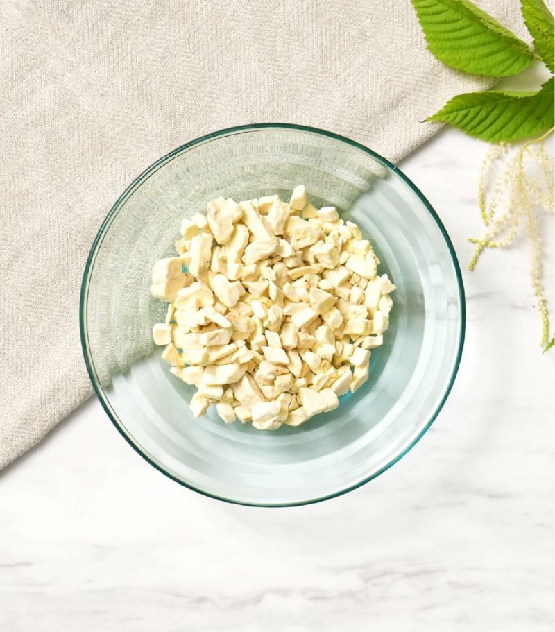 フリーズドライにすることで、生の状態より必須アミノ酸・食物繊維・カリウム・鉄・ビタミンB2などの栄養素がアップした体に嬉しいおやつです。