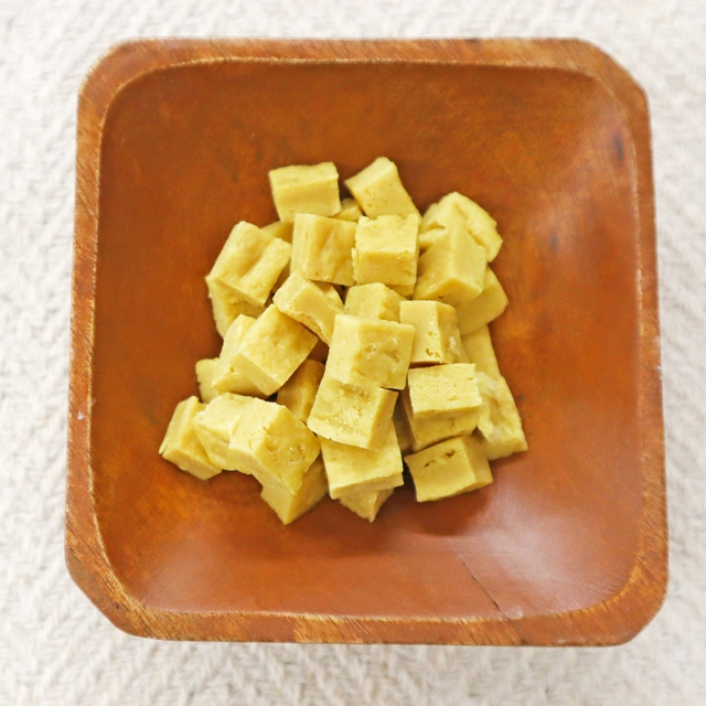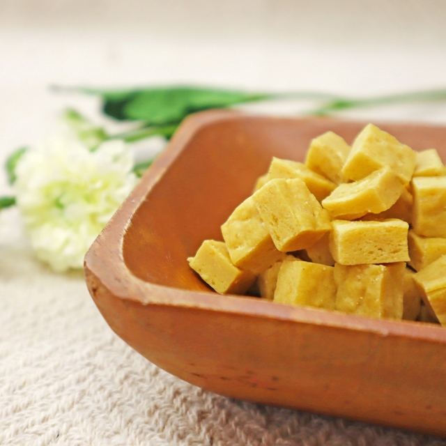 ころころとした小さめの角切りジャーキーですので、小型犬のワンちゃんにも美味しく召し上がっていただけます。