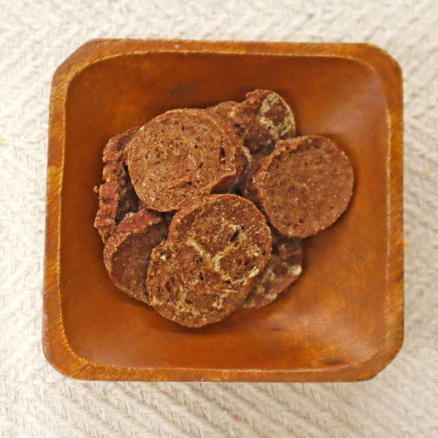 良質な馬肉をたっぷり使用し、小型犬も食べやすいよう薄めのチップ状に仕上げました。