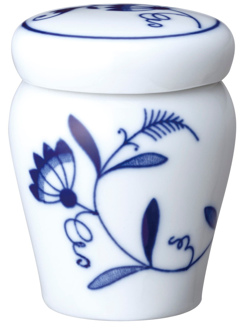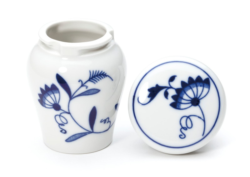 白磁に藍の伝統と新しさが美しい、ボヘミア ブルーオニオンのミニ骨壺です。