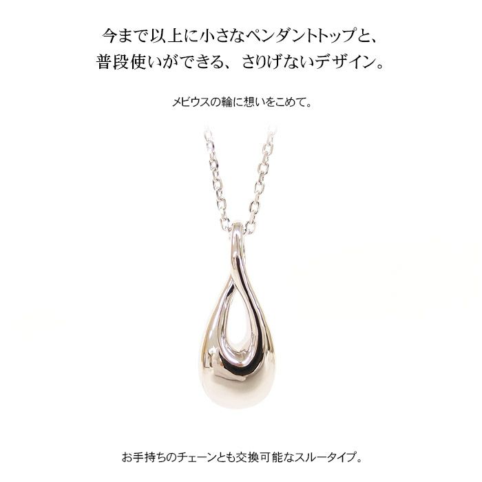 大切な人をやさしくエレガントなフォルムで包みたい。今まで以上に小さなペンダントトップと、普段使いができる、さりげないデザイン。メビウスの輪に想いをこめて。