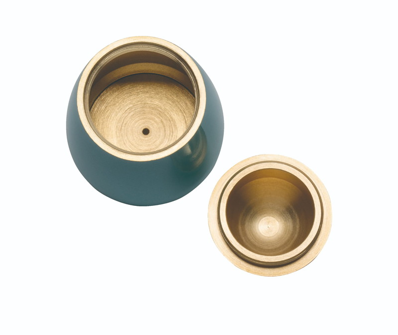 水彩パレットのような鮮やかな色合いの真鍮製容器。アクセントのゴールドラインを含め、一体感のあるなめらかな曲線で構成された愛らしいカタチです。