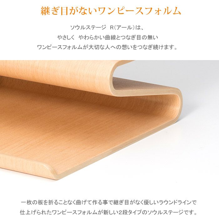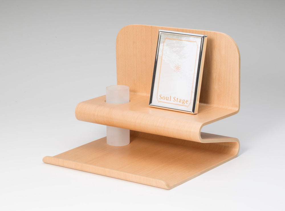 大切な方への想いをそれぞれに育むために、様々な意匠をこらしたソウルジュエリー(遺骨ペンダント)や ソウルプチポット(ミニ骨壺)に納めて手元に置き、いつもそばに感じる『心のステージ』。和洋の調度を選ばず、日々の暮らしの中でさりげなく調和する絆の場所です。コンパクトで立体的なコミュニケーションスペースを実現2段のステージなので、ソウルプチポット、フォトフレーム、遺品等を自由度高く立体的に置くことができ、コンパクトで洗練された大切な方とのコミュニケーションスペースを作ることができます。
