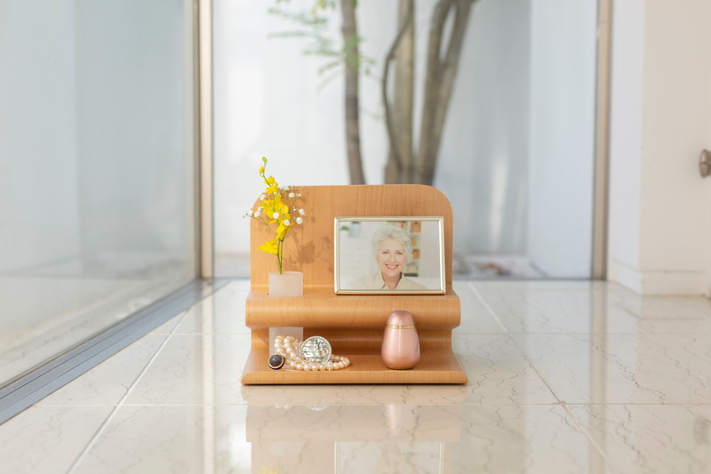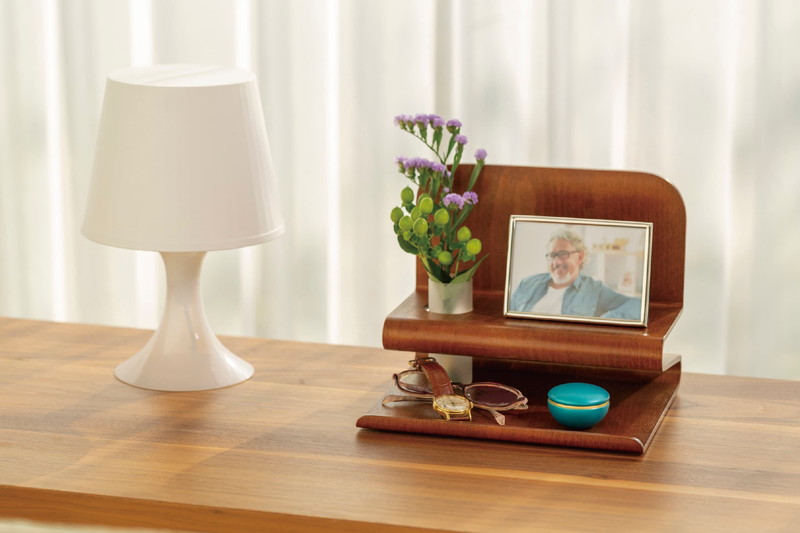 2段のステージなので、ソウルプチポット、フォトフレーム、遺品等を自由度高く立体的に置くことができ、コンパクトで洗練された大切な方とのコミュニケーションスペースを作ることができます。