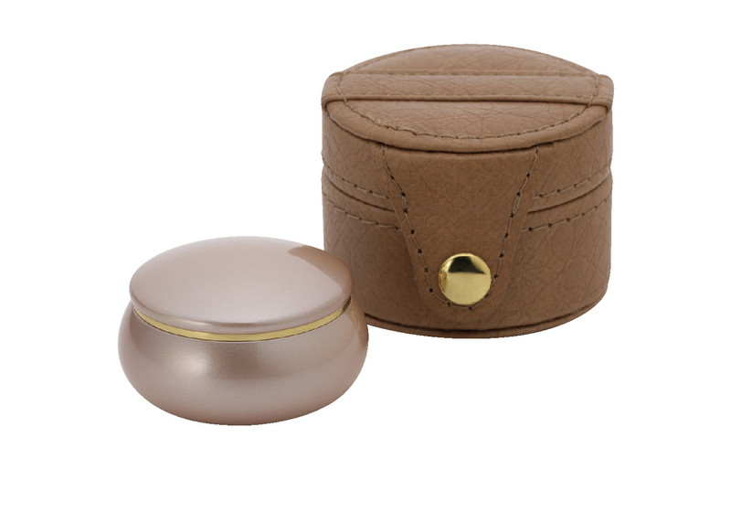 部屋置きでも骨壺とも判別できない、コスメポーチのような安定感のある落ち着いたフォルムのポーチはポットの大きさにぴったりと合い、持ち運びなどでポットの蓋のゆるみや外れを防ぎます。