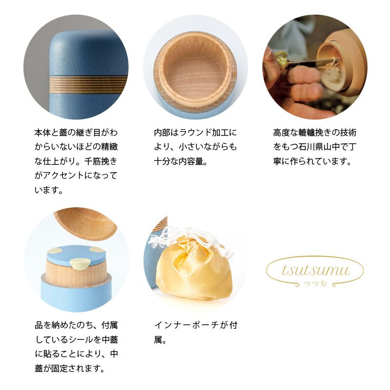 丸みのあるやわらかいフォルムで、ふれた時に感じる、温かみのある仕上がりです。石川県加賀山中の高度な轆轤挽きの技法によって実現した逸品です。丸みのあるやわらかいフォルムと肌触りが、大切な人を想う心に寄り添います。
