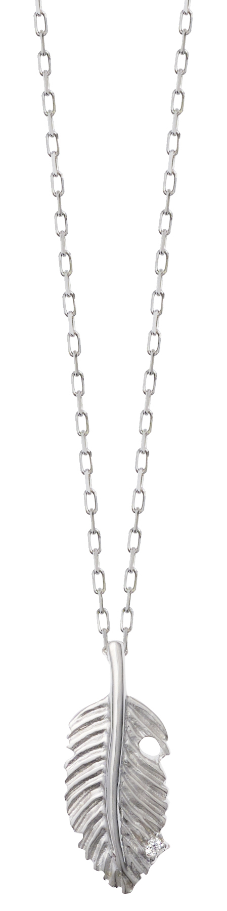 細かな装飾を施した美しい羽根に、ワンポイントの小さなダイヤモンドを施した可憐なデザイン。チェーン線径は従来商品よりも細く(0.3㎜φ)、装着した際に繊細な雰囲気となります。トップ、チェーン共にK10製です。