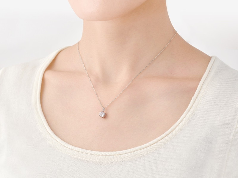 美しく輝くSoul Jewelryオリジナルカットのキュービックジルコニアを施したオーソドックスな一粒石ペンダント。