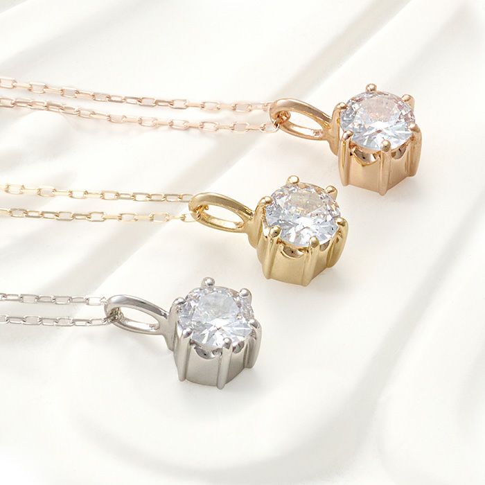 美しく輝くSoul Jewelryオリジナルカットのキュービックジルコニアを施したオーソドックスな一粒石ペンダント。チェーン線径は従来商品よりも細く(0.3㎜φ)、装着した際に繊細な雰囲気となります。トップ、チェーン共にK10製です。